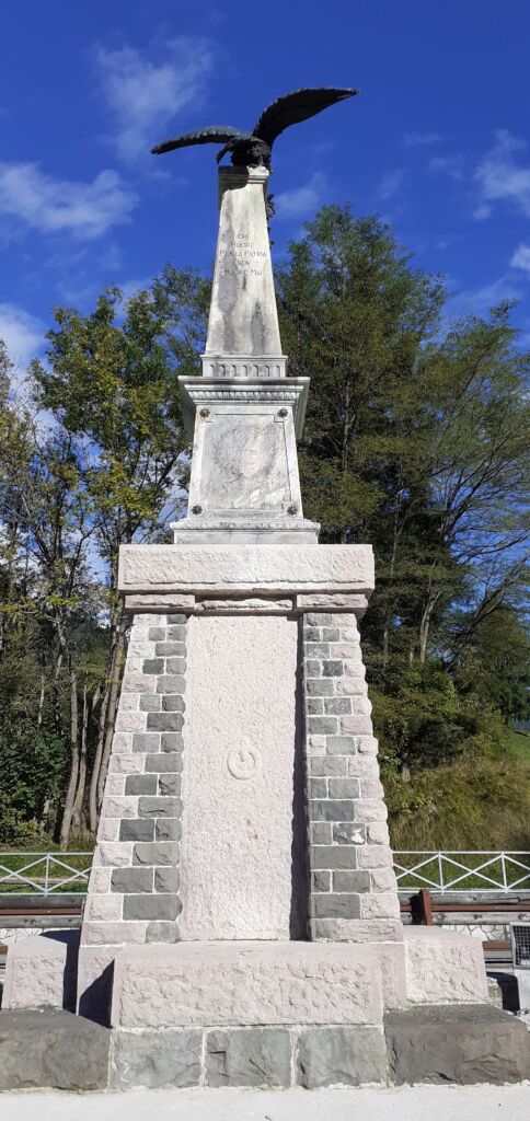 Dopo una serie di traversie il monumento fu inaugurato nel 1921, ma nel 1922 fu demolito e fu recuperata la colonna in marmo e l'aquila sovrastante a causa del rifacimento della Statale di Alemagna che doveva essere modificata nel punto in cui si trovava l'area destinata al monumento.