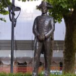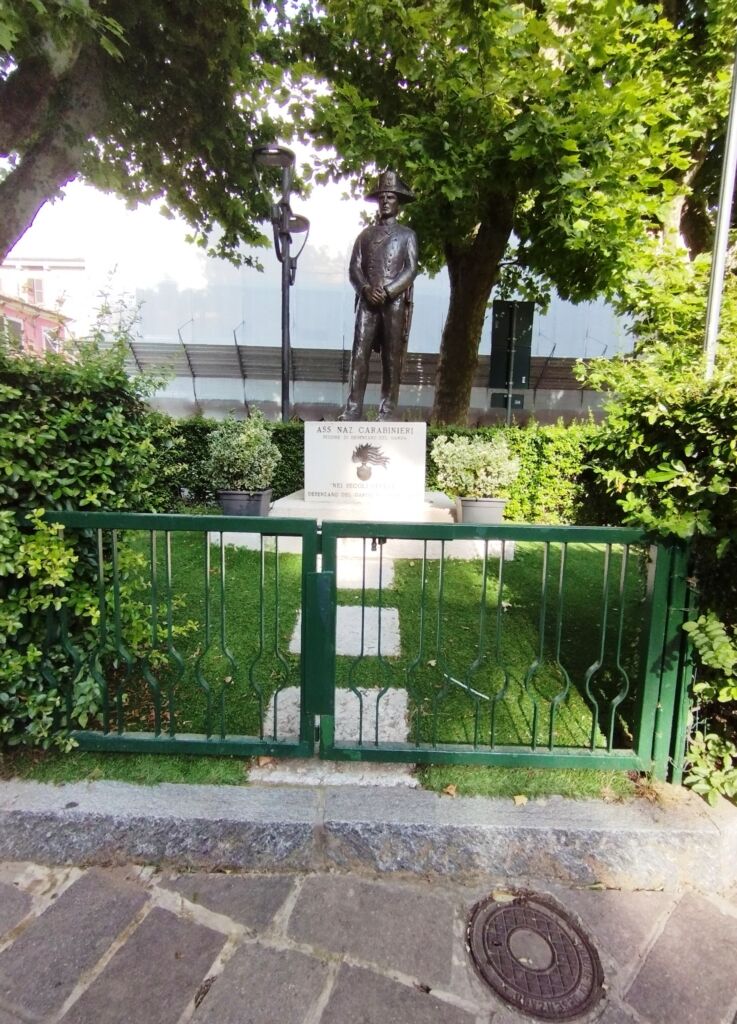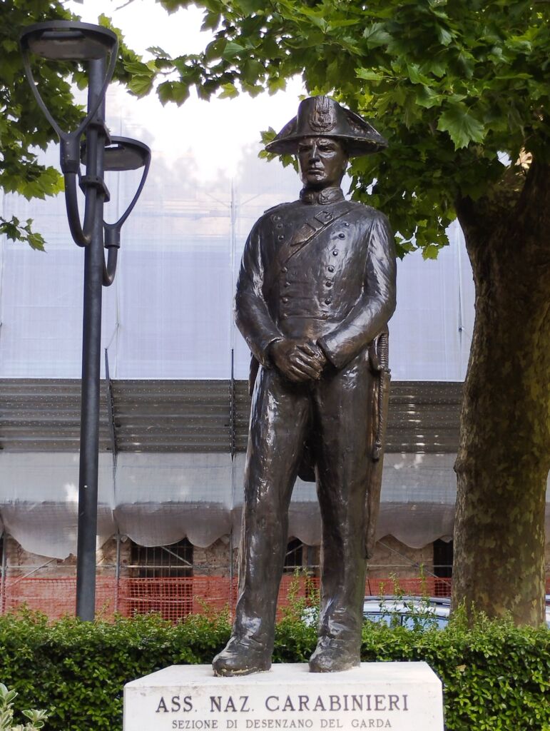 La statua (alta 1,85 m) rappresenta il carabiniere vestito nella storica grande uniforme del 1848. L’opera dell’artista Angelo Angini (Nove – VI) è stata realizzata con la tecnica della cera persa nella fonderia d’arte Briman di Verona.