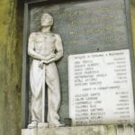 - la figura in primo piano rappresenta uno degli operai deportati oppure uccisi come partigiani. La fierezza del volto, il viso fermo e la forza che promana dal corpo muscoloso sono il simbolo migliore di quei lavoratori che ebbero alto il sentimento della dignità del loro lavoro e si ribellarono allo sfruttamento e all’oppressione