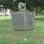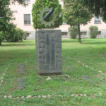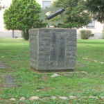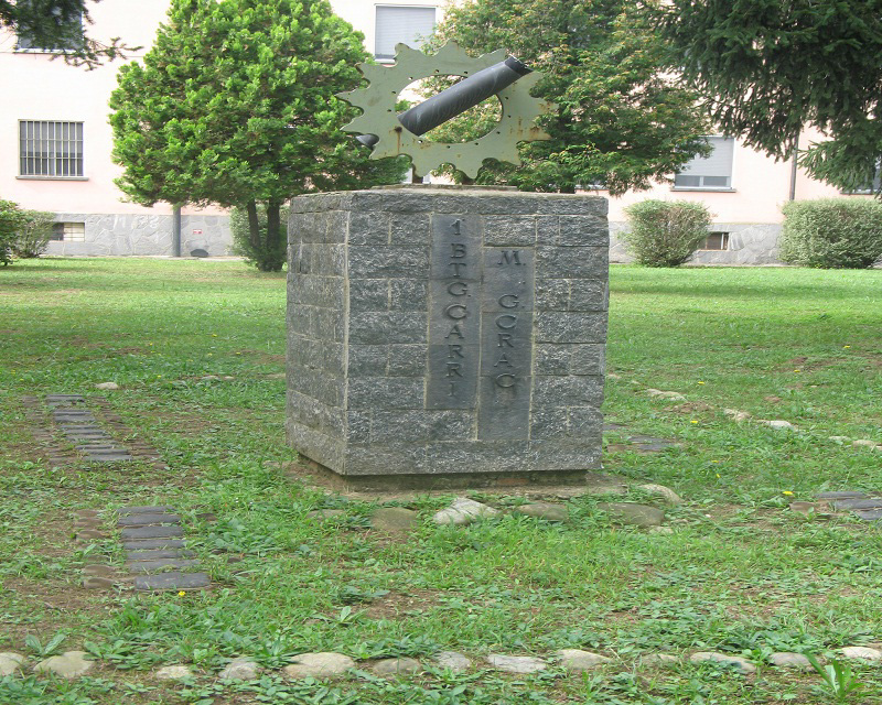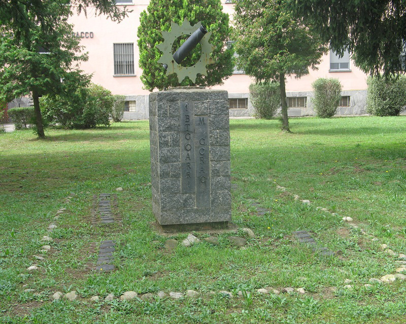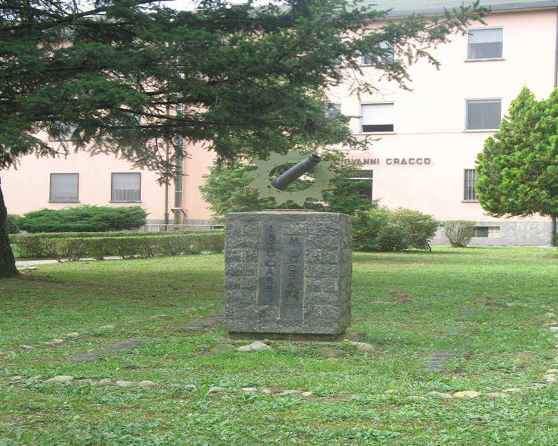 - Pietra per il basamento; rivestimento in beole; iscrizione in bronzo.