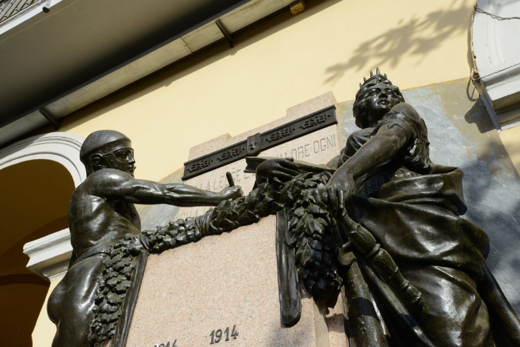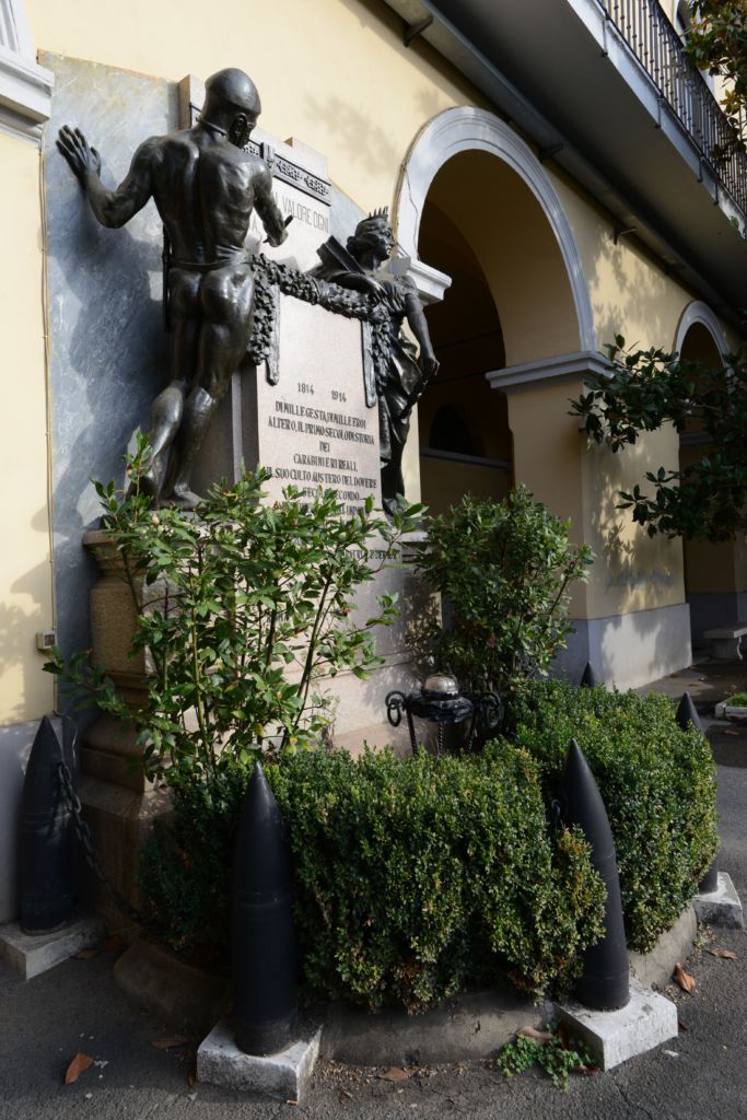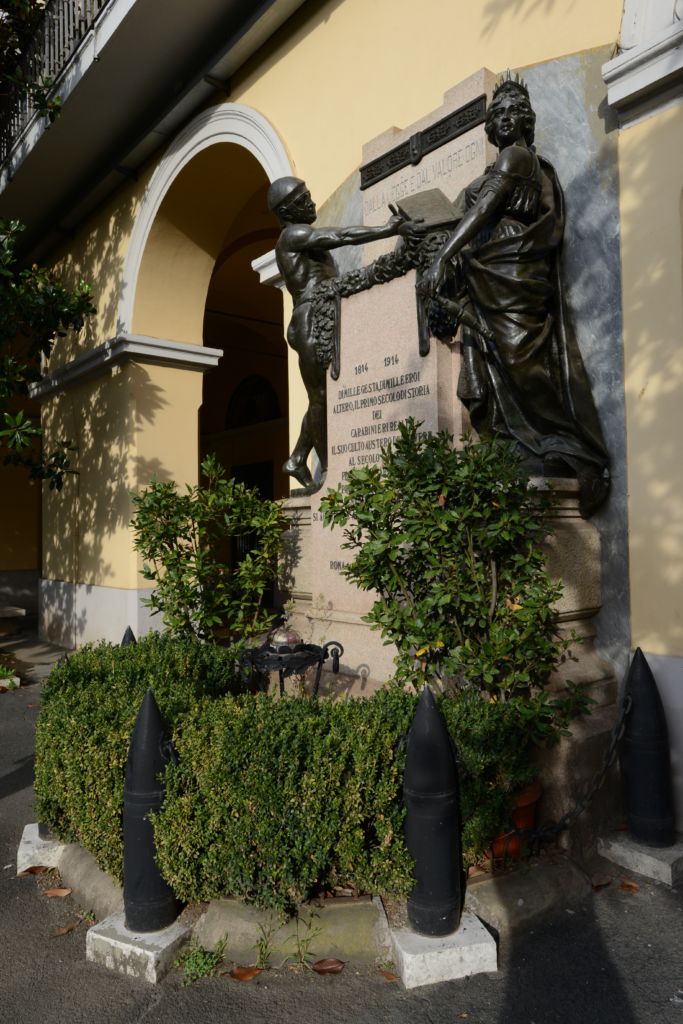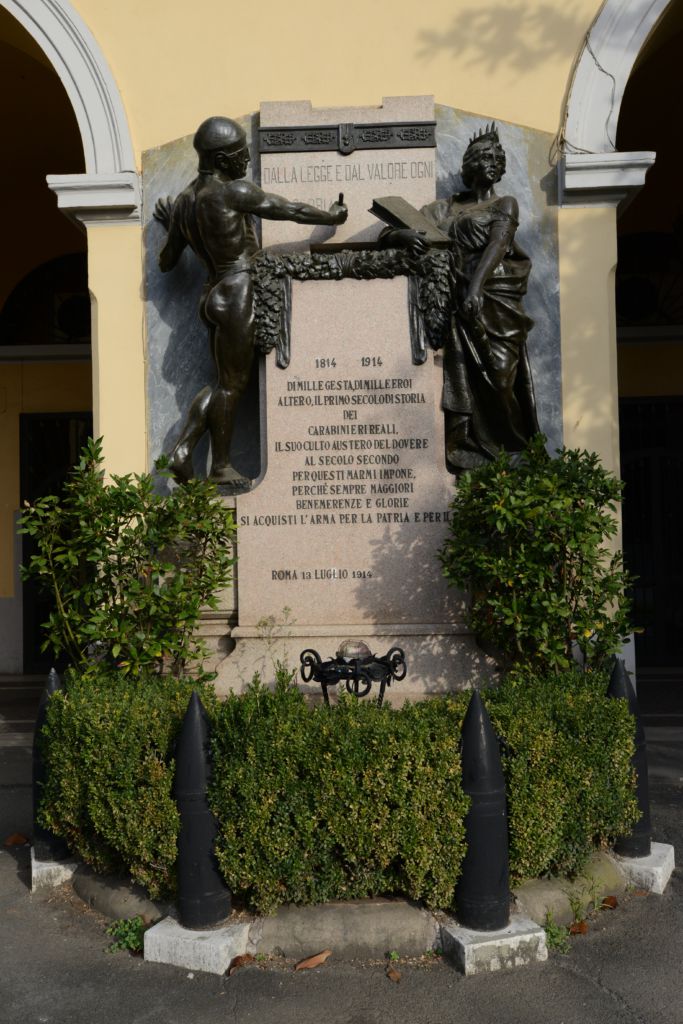 DI MILLE GESTA, DI MILLE EROI / ALTERO, IL PRIMO SECOLO DI STORIA / DEI / CARABINIERI REALI, / IL SUO CULTO AUSTERO AL DOVERE / AL SECOLO SECONDO / PER QUESTI MARMI IMPONE, / PERCHE' SEMPRE MAGGIORI / BENEMERENZE E GLORIE / SI ACQUISTI L'ARMA PER LA PATRIA E PER IL RE / ROMA 13 LUGLIO 1914