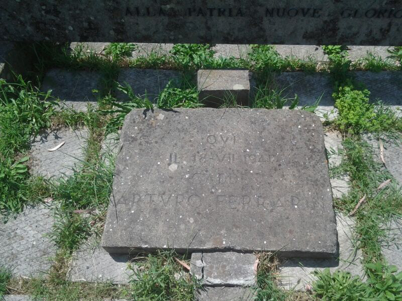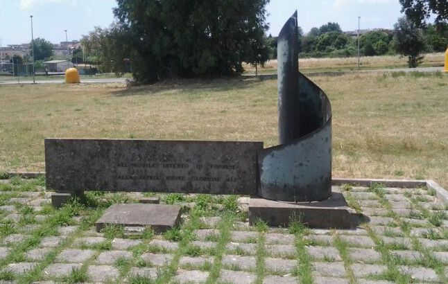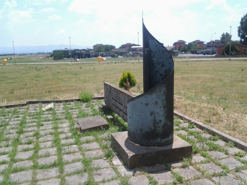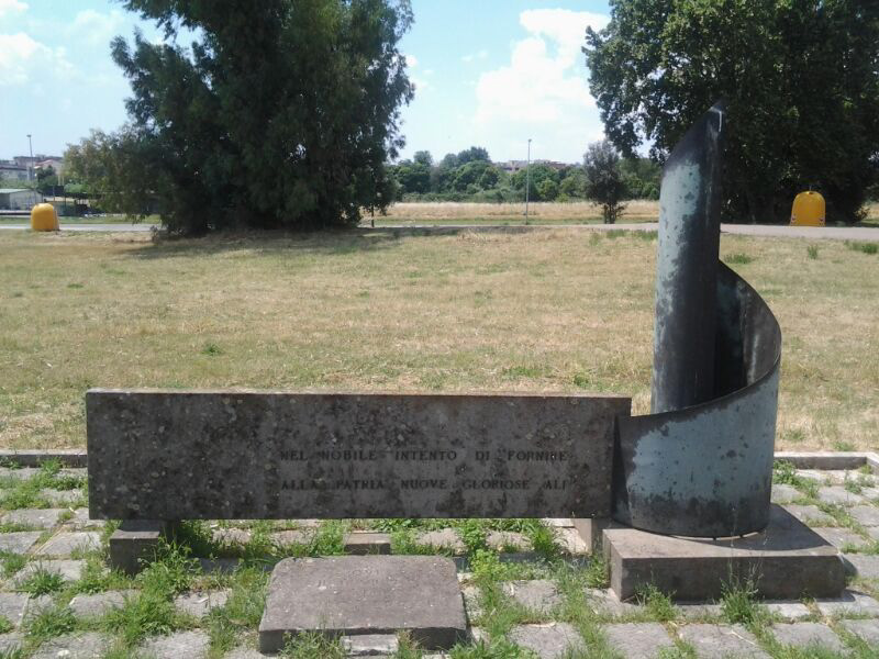 Monumento eretto alla memoria di A. Ferrarin, caduto mentre provava un nuovo prototipo di aereo il 18 luglio 1941. Il monumento è costituito da due lastre in peperino ed una spirale in lamiera zincata.