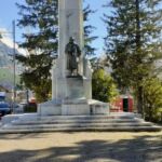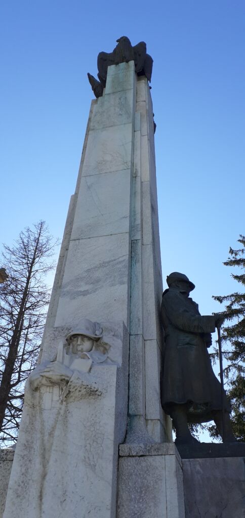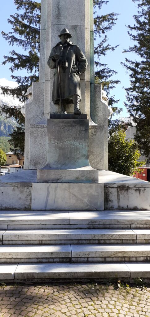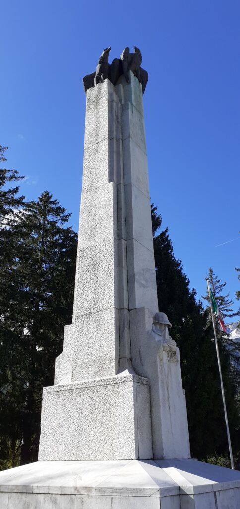 - L'obelisco, comprese le statue dei due Alpini, è in marmo bianco.