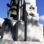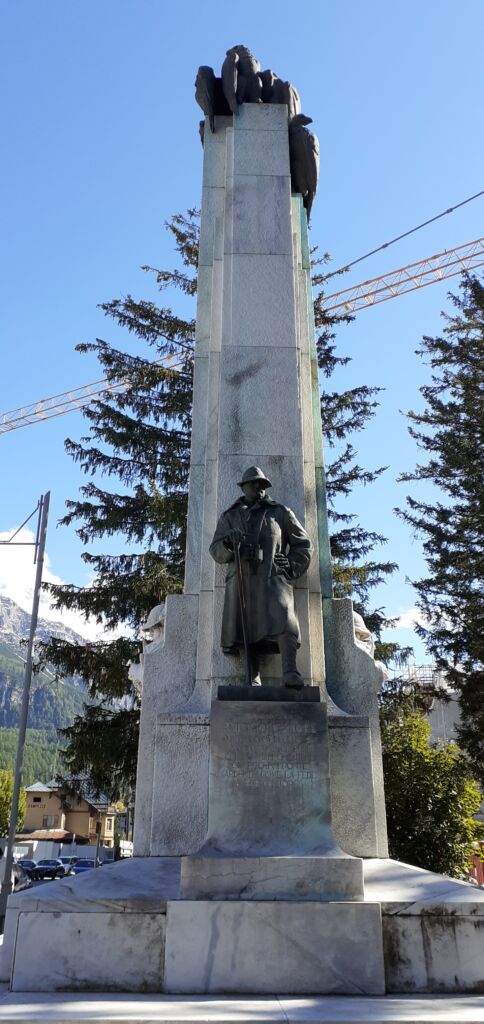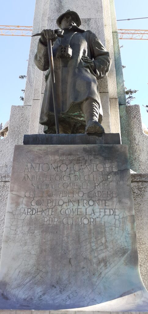 La statua del Generale Antonio Cantore e il nido di aquile sulla sommità sono in bronzo.