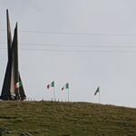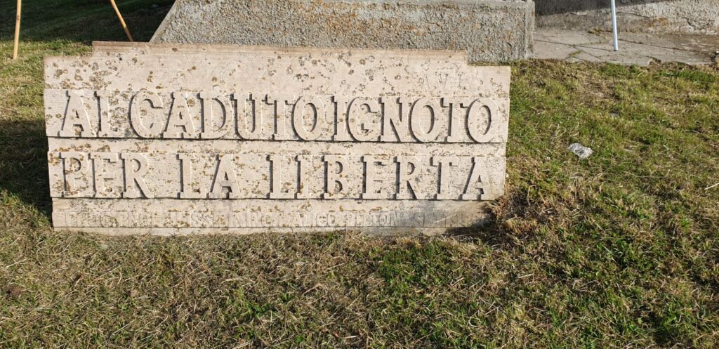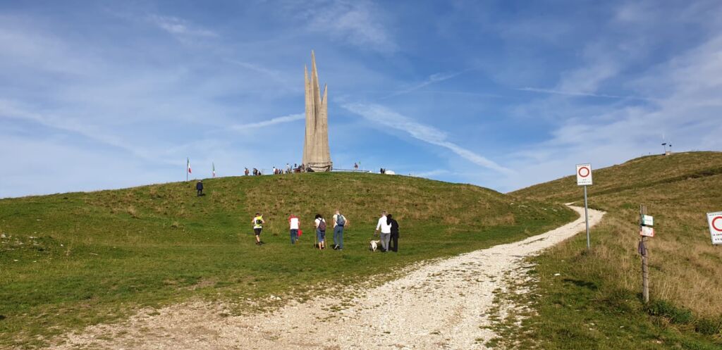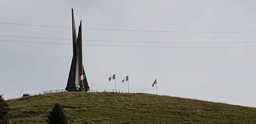 - Il monumento è diviso in 2 parti: la struttura (che si può vedere fin dalla pianura) e lo scritto commemorativo. La struttura con basamento a forma di croce, innalzata nel 1970, ha quattro vele in cemento che si intrecciano. Mentre la scritta commemorativa è in caratteri in pietra.