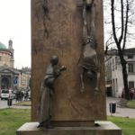 - Iscrizione:”PARTIGIANO TI HO VISTO APPESO IMMOBILE. SOLO I CAPELLI SI MUOVEVANO LEGGERMENTE SULLA TUA FRONTE. ERA L’ARIA DELLA SERA CHE SOTTILMENTE STRISCIAVA NEL SILENZIO E TI ACCAREZZAVA, COME AVREI VOLUTO FARE IO – Giacomo Manzù, 25 aprile 1977”.