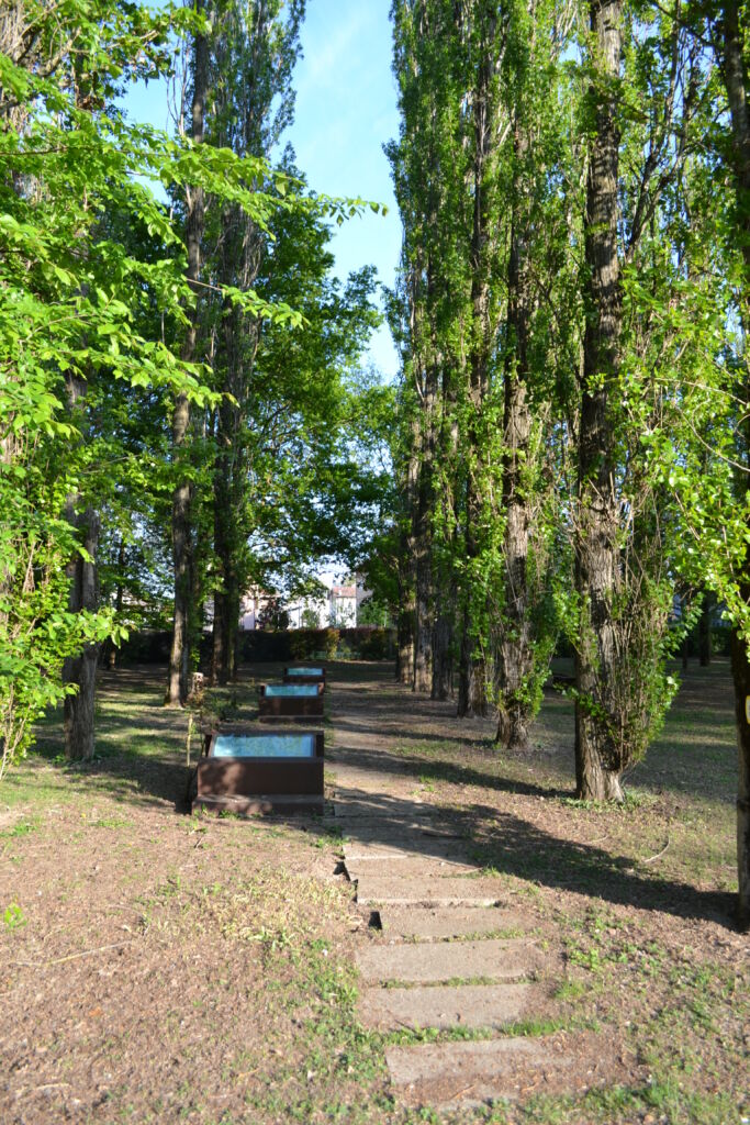 - Nel 1999 l'ANPI, le Associazioni ex combattentistiche e l'Amministrazione Comunale di Correggio indissero un concorso per la realizzazione del Monumento alla libertà e alla pace. Furono presentati 93 progetti tra cui vinse, nel 2000, quello intitolato "3di3" di Claudia Bolognesi, Paolo lotti e Marco Pavarani. Esso è composto di una lastra nera di calcestruzzo con inerti di pietra lavica (come un monolite di roccia sospeso da terra a rappresentare una pietra tombale che esprime il sacrificio di chi ha lottato per l’affermazione di libertà e pace) da cui si generano fasci di fibre ottiche (come flussi di energia che coinvolgono tutto il contesto). Le fasce di contorno alle fibre ottiche sono in acciaio corten che hanno il colore ruggine-bruno della terra. Un giardino di pietra, in pietrisco nero e corteccia, costituisce un’area destinata al pubblico durante manifestazioni estive, di incontro, di spettacolo. Il progetto fu ampliato su richiesta dell’ANPI di inserire i nomi dei partigiani correggesi caduti: fu sfruttato un doppio filare di pioppi per formarci un camminamento a passi sparsi in blocchi di cemento graffiato, ai lati dei quali sono presenti blocchi in corten con lastre di vetro blindato retroilluminate da cui affiorano i nomi dei caduti.