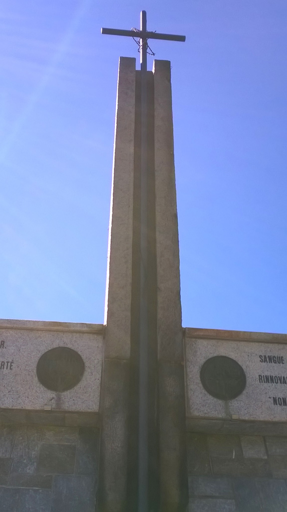 - Pietra per il rivestimento della base e di gran parte del monumento; marmo per l'iscrizione principale in alto; ferro per la croce; bronzo per la lastra.