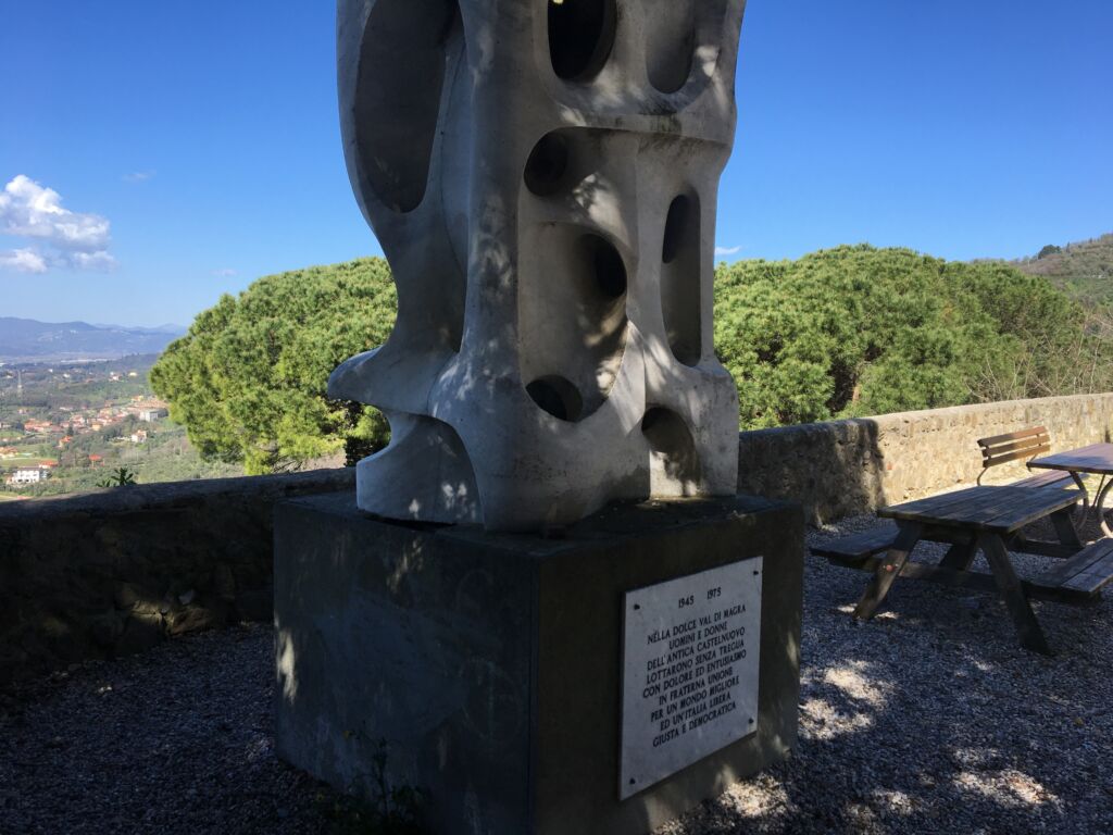 - L’autore dell’opera, Nardo Dunchi (1914-2010), oltre che un importante scultore carrarese, fu anche un partigiano. Dopo l’8 settembre 1943 organizzò uno dei primi nuclei combattenti partigiani, la “Banda di Boves", che operava nel cuneese. Durante questo periodo Dunchi si contraddistinse per il suo grandissimo coraggio e valore, tanto che nacquero leggende attorno al suo nome. Giorgio Bocca lo ha definito “Uno dei più grandi partigiani combattenti d’Italia”. Uno degli episodi più noti è quello di Vernante, quando fece esplodere un ponte per far sì che i treni dei tedeschi non sottraessero i viveri alla popolazione locale. Ritornato in Toscana, continuò la lotta partigiana prima coordinando i lanci alleati destinati alle bande partigiane dislocate fra gli Appennini e le Apuane, in seguito organizzando la formazione di nuovi gruppi di combattenti. Alla fine della guerra ricevette la medaglia d’argento al valor militare.