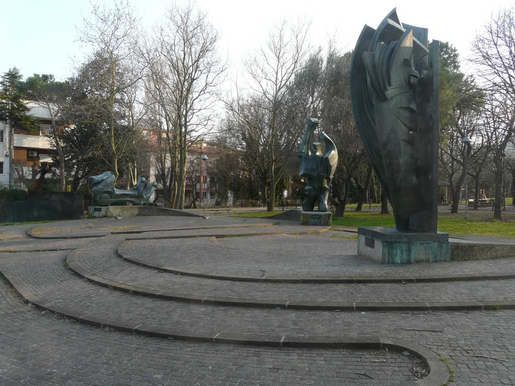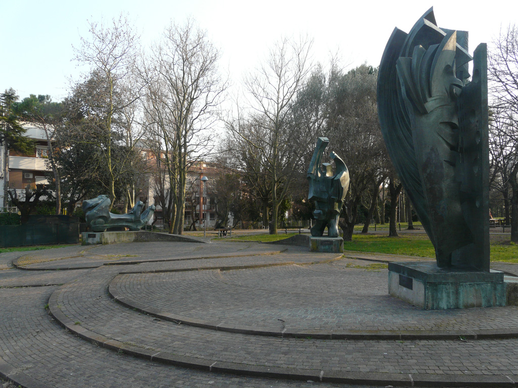 All’interno del Parco Fratelli Cervi di Rimini, a due passi dalla Via Roma, si trova un complesso monumentale intitolato: “La Resistenza”, costituito da tre maestose sculture in bronzo, opera del noto scultore riminese Elio Morri.