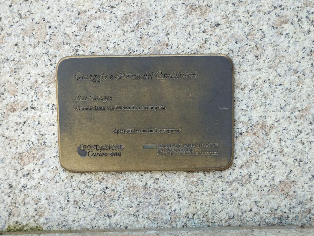 Monumento omaggio all’Arma dei Carabinieri realizzato da Pino Castagna con il sostegno di Fondazione Cariverona e di Banca Popolare di Verona.