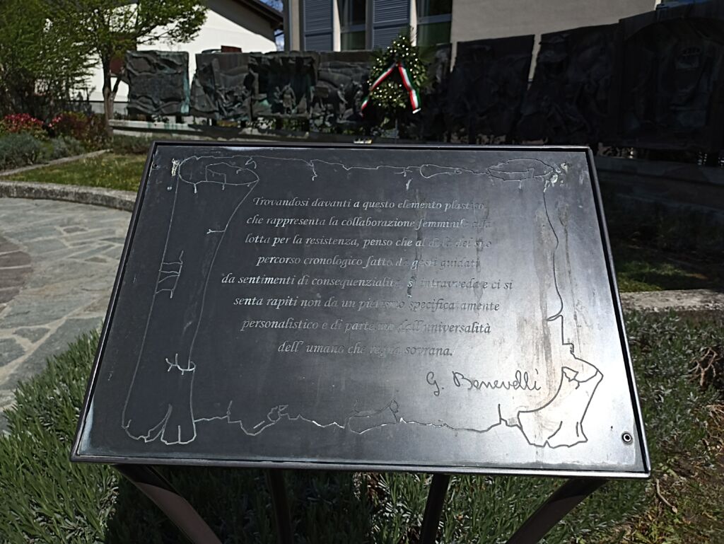 Il complesso monumentale è costituito da nove lastre in bronzo con bassorilievi ed altorilievi, che rappresentano il ruolo della donna nella guerra di Liberazione.  I pannelli sono posizionati a ventaglio su strutture in cemento.