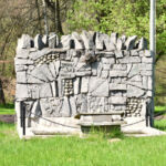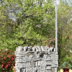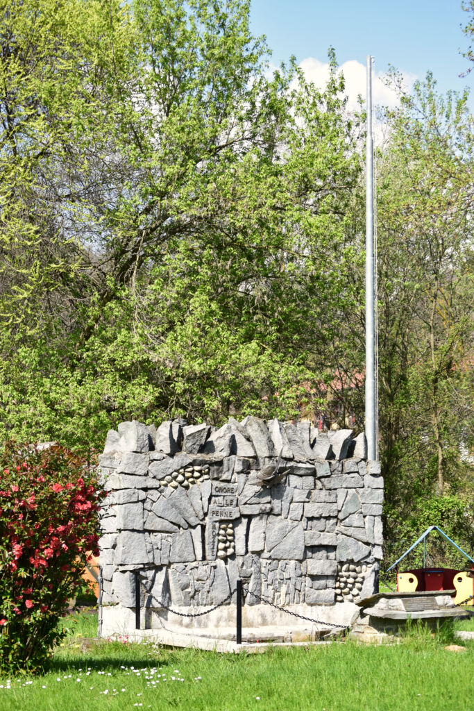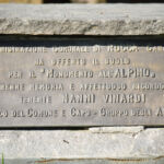 - Monumento in pietra con lettere, simboli e targa in bronzo. Presente asta portabandiera. Cippo e lastra in granito, con incisioni in nero.