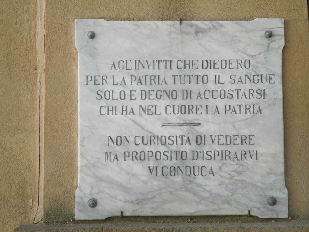 - Bassorilievo rappresentante l'aquila, simbolo del regno d'Italia con uno stemma crociato sul corpo e due ramoscelli di ulivo e quercia tra le zampe.
