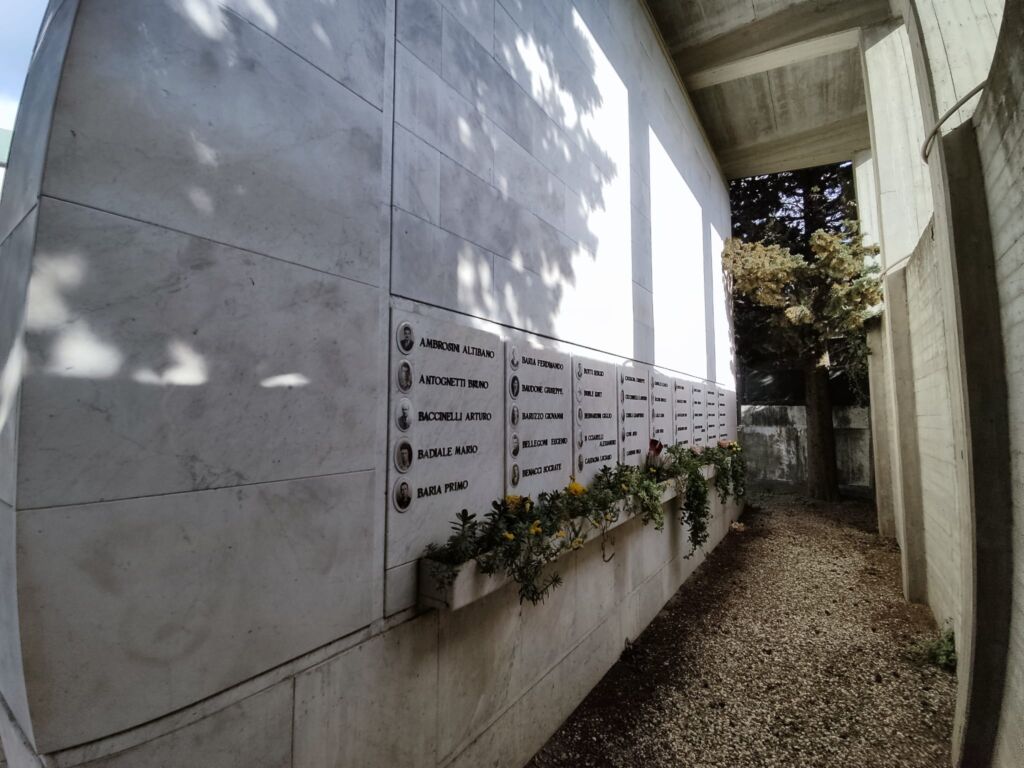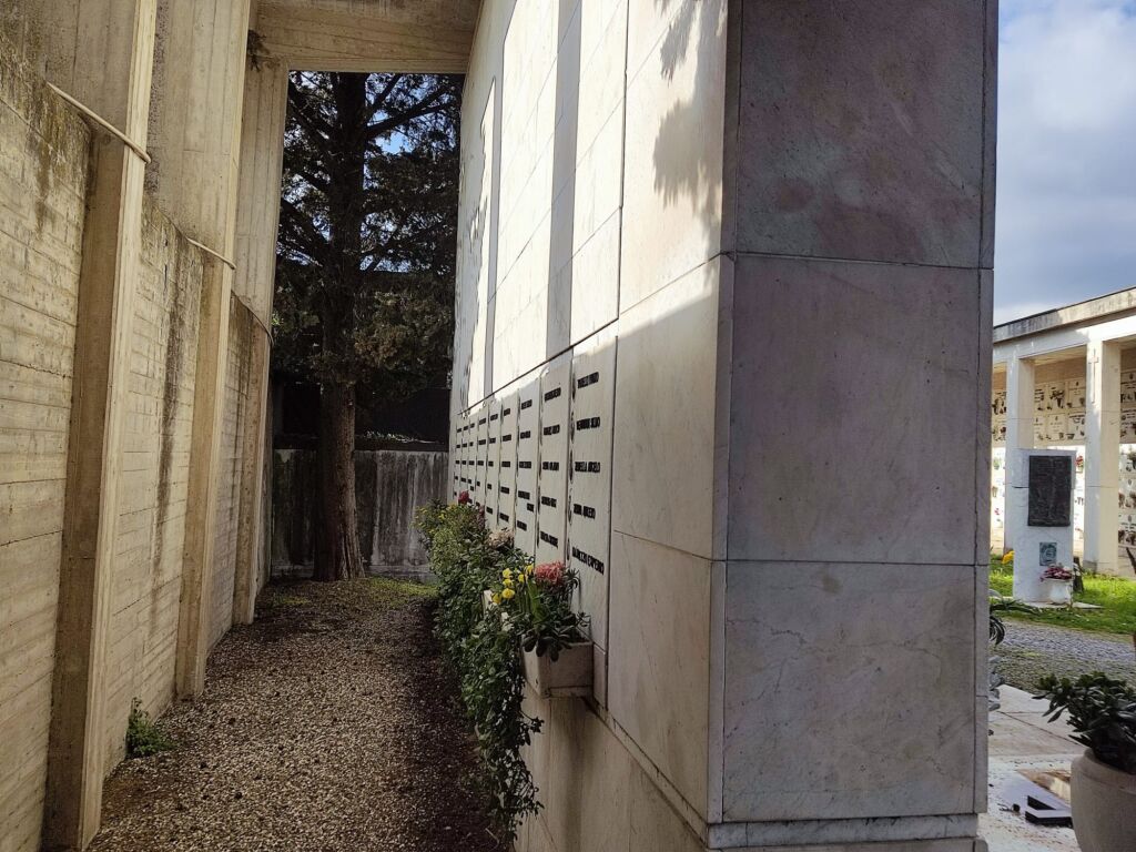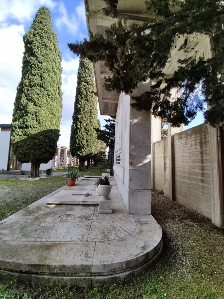 - Sul fondo del viale principale d’ingresso del cimitero, a ridosso delle mura perimetrali.