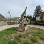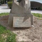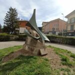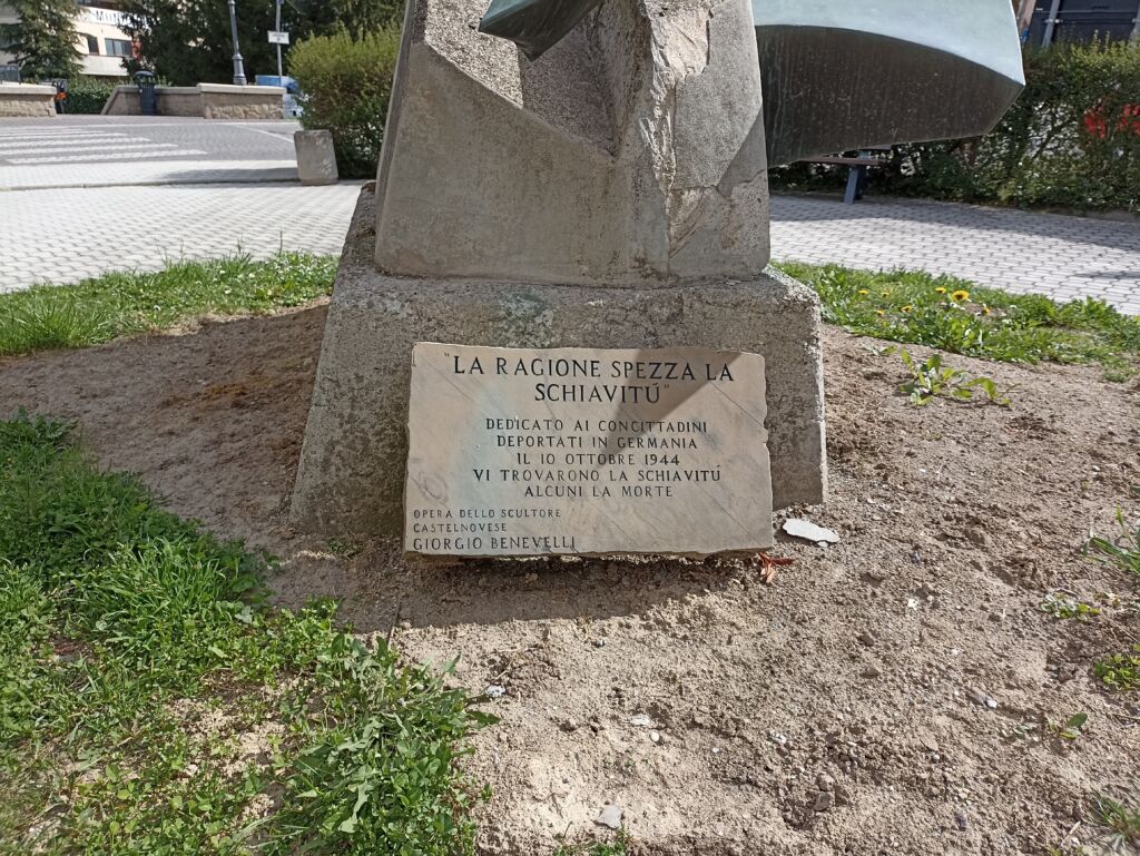 - basamento in pietra, elementi in acciaio e lastra in marmo.