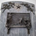 Al di sopra dell’opera è presente una stella a cinque punte da cui si diramano una serie di raggi incisi nella lastra marmorea e verniciati d’oro. Ai lati della stella sono presenti due rami di alloro e di quercia in bronzo.