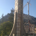 - Pietra per la costruzione centrale, cemento per i contrafforti ed acciaio per le scritte.