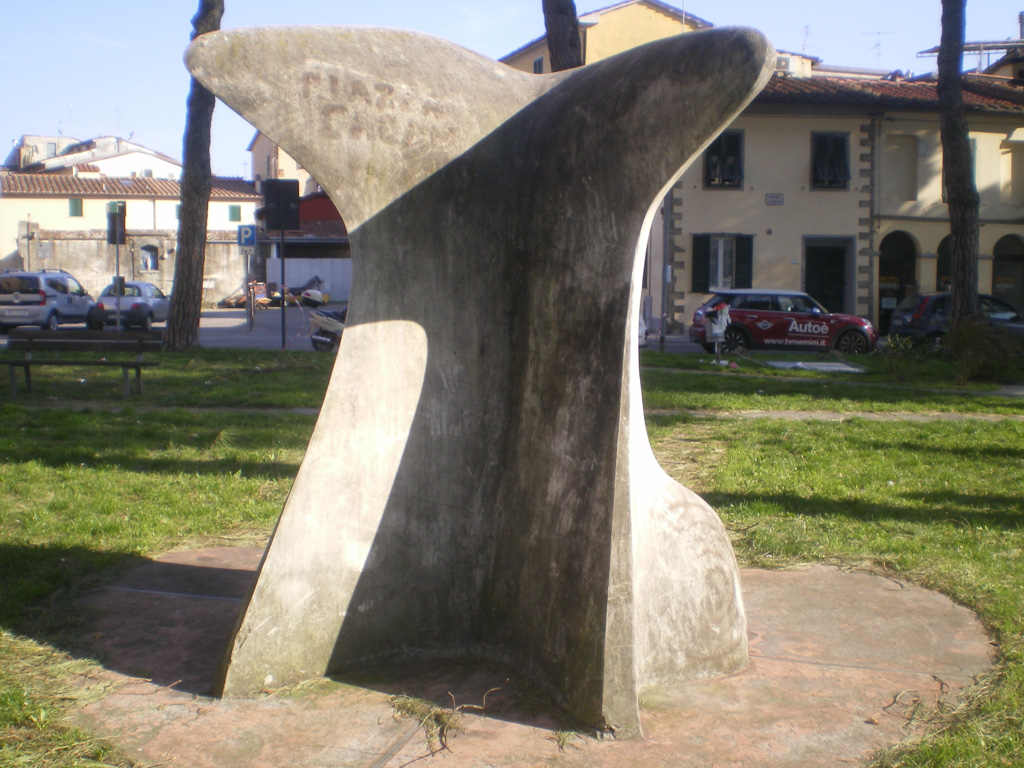 Il monumento è costituito da un blocco di cemento che vuole rappresentare una resurrezione dopo l’olocausto, esso riproduce in modo stilizzato la Nike di Samotracia; sulla sua base sono incise le parole di Alfonso Gatto .