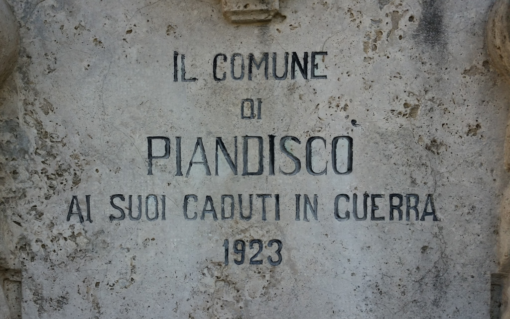 - IL COMUNE/ DI / PIANDISCO/ AI SUOI CADUTI IN GUERRA/ 1922