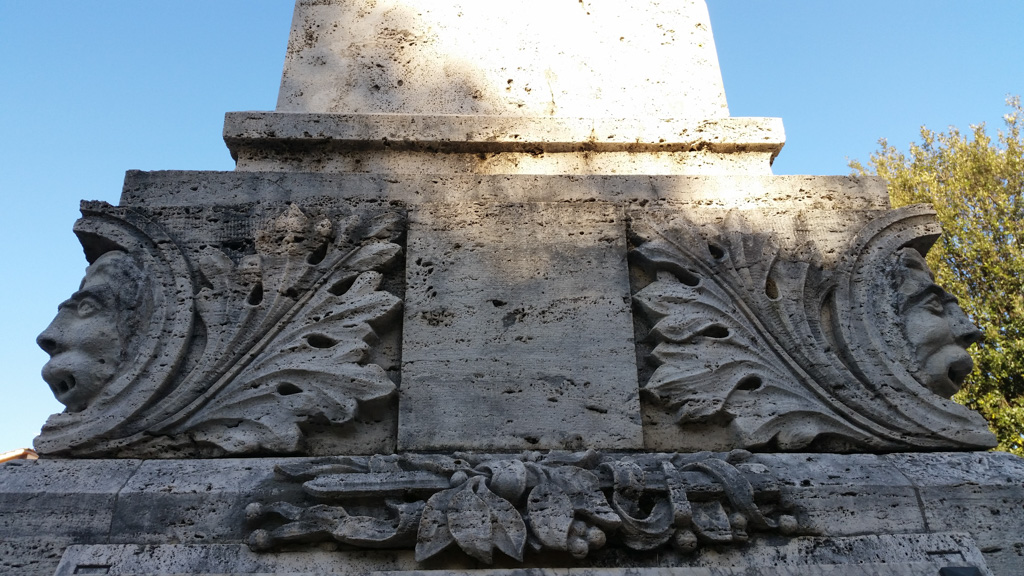 - L'intero monumento è realizzato in travertino. In origine l'aquila sulla sommità e una ghirlanda erano in bronzo (fusi in epoca fascista per dare il metallo alla Patria)