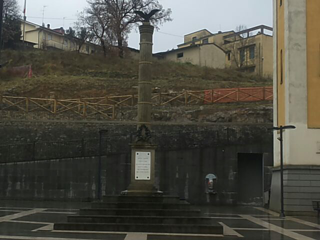 Il monumento ai Caduti era inizialmente collocato nel Parco della Rimembranza, che si trovava sopra il livello dell'attuale chiesa. Il Parco fu successivamente distrutto e la colonna fu spostata nell'attuale piazza, quando fu costruita anche la chiesa. La colonna è stata restaurata nel 2009.
