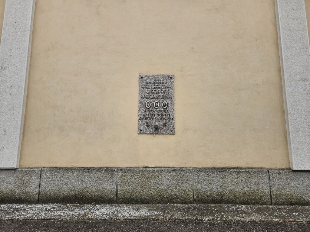 La lapide è dedicata a Afro Fornia, Anteo Donati e Salvatore Carrozza, partigiani fucilati dai fascisti presso il cimitero di Monticelli il 18 aprile 1944. Si tratta di una lastra rettangolare di granito, sostenuta da quattr ...