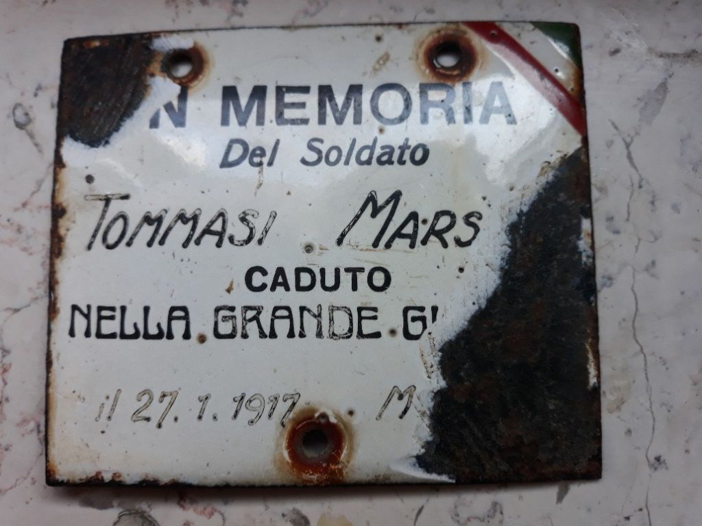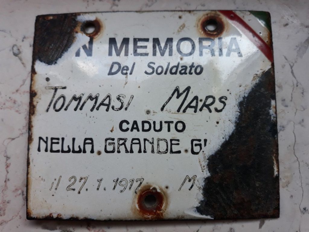 In memoria del soldato Tommasi Mars (?) caduto nella Grande Guerra il 27.1.1917 M(?)