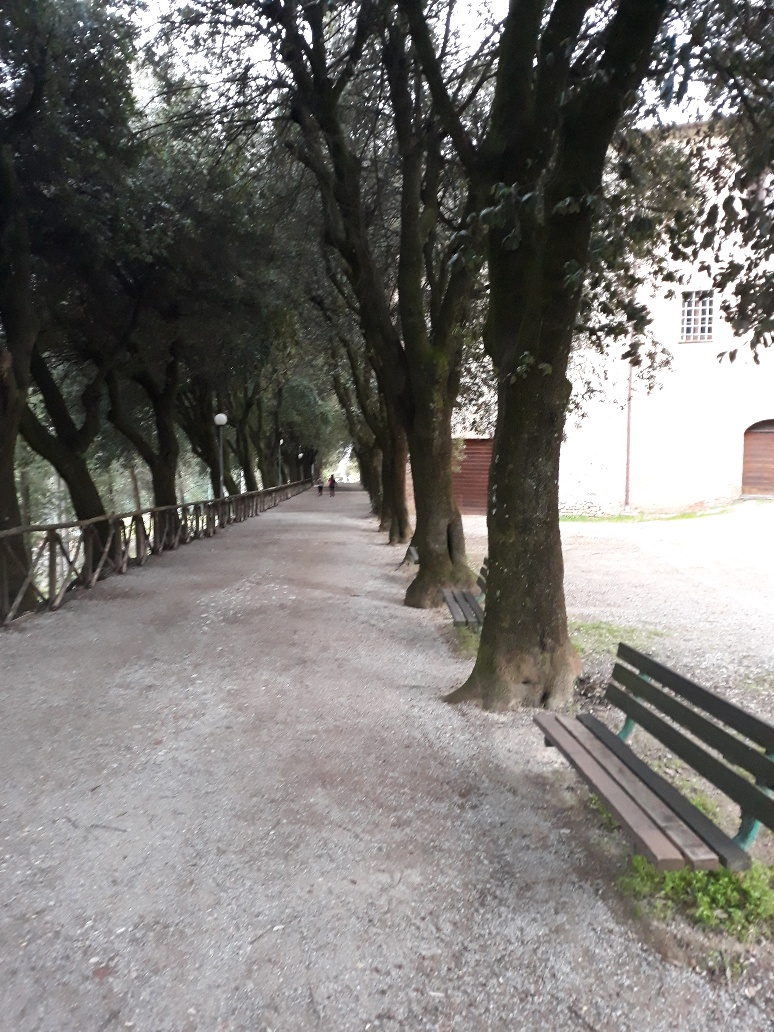 - Il parco collega viale Icilio Vanni a via Santa Lucia. Ha una forma a ferro di cavalo e si snoda intorno al Monastero delle Monache Clarisse di Santa Lucia. Gli alberi sono stati piantati su entrambi i lati ad una distanza di circa 4 metri. Accanto ad ogni leccio era stato collocato un palo con una targhetta nella quale era riportato il nome del soldato caduto e alcuni dati. Negli anni le targhette sono state rimosse e sono conservate da privati. Fra gli alberi, nel lato prossimo al muro di cinta del monastero sono state sistemate alcune panchine. Il viale è ricoperto di ghiaia per circa tre quarti della sua lunghezza e asfaltato nella parte rimanente. Da sempre il viale è un’isola pedonale.