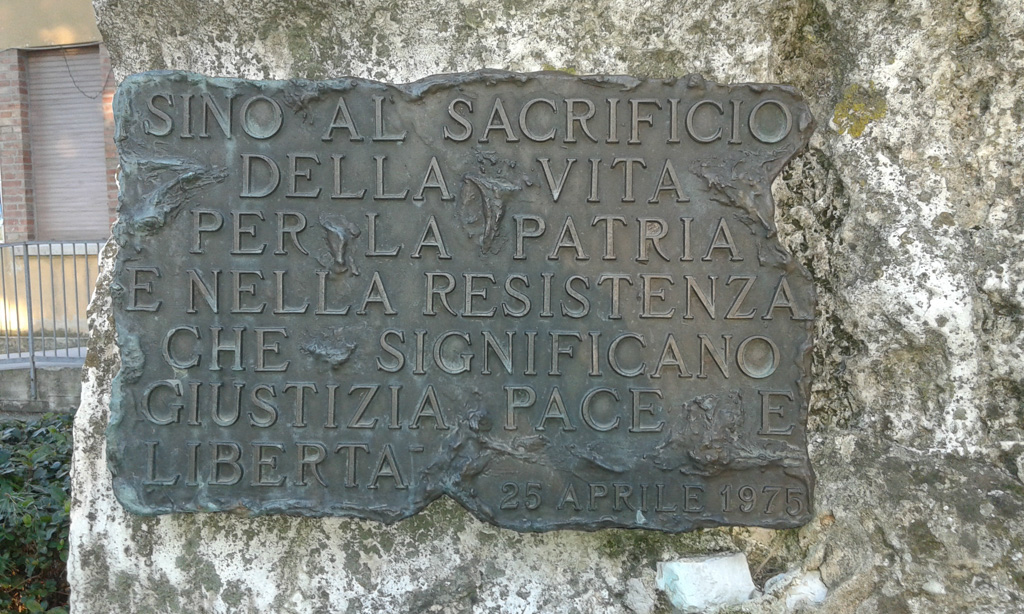 SINO AL SACRIFICIO DELLA VITA / PER LA PATRIA / E NELLA RESISTENZA/ CHE SIGNIFICANO / GIUSTIZIA, PACE E / LIBERTA’ ” – 25 APRILE 1975 –