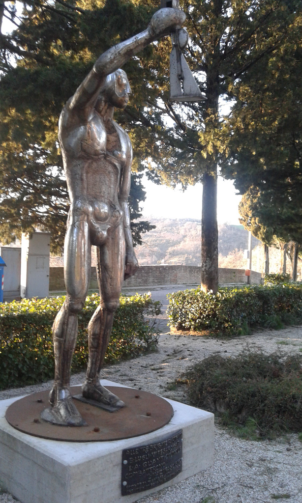 Il monumento, risalente al 3 luglio 1988, rappresenta un soldato con il braccio destro alzato mentre impugna un fucile, intitolato alle Brigate partigiane “Bruno Lugli “, “G.A.P.” e “V. Pesaro”. La statua è collocata su una lastra in ferro poggiante su un basamento in cemento, a cui è affissa una lastra in bronzo. Il monumento inizialmente era collocato in loc. Monte S. Bartolo; è stato traslocato nel parco il 31 agosto 2014.