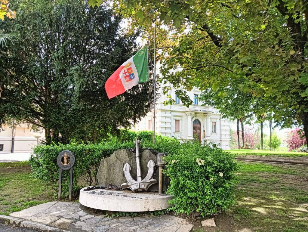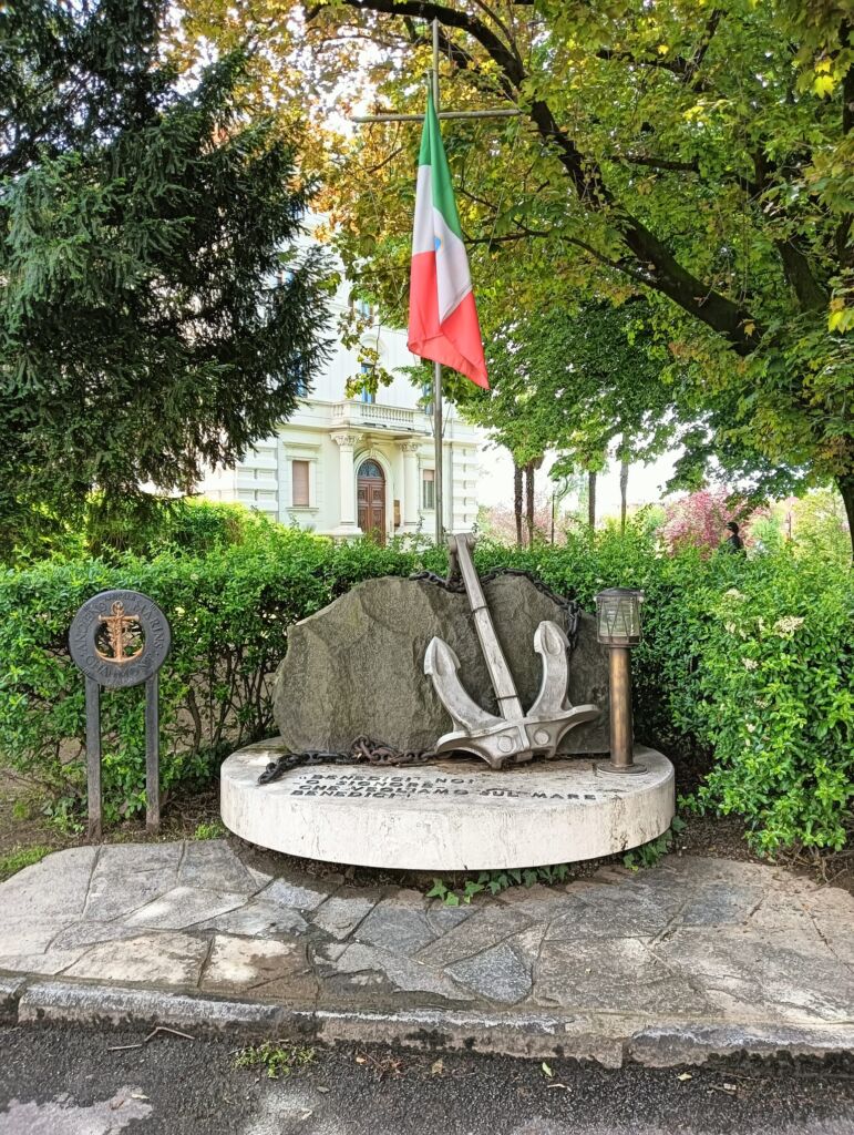 Il Monumento ai Caduti della Marina è composto da un basamento in pietra chiara, tondeggiante, di diametro circa 1 metro e spessore 10 centimetri, su cui sta scritto: