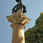 La colonna corinzia è un richiamo alla “romanità”, costrutto neoclassico tipico dell’ideologia del fascismo, epoca in cui il monumento fu costruito. Similmente, la testa di lupo che sorregge la statua può rappresentare la lupa capitolina, che fu un simbolo fondamentale nella mitologia romana, rappresentando le origini mitiche della "Città Eterna", Roma.