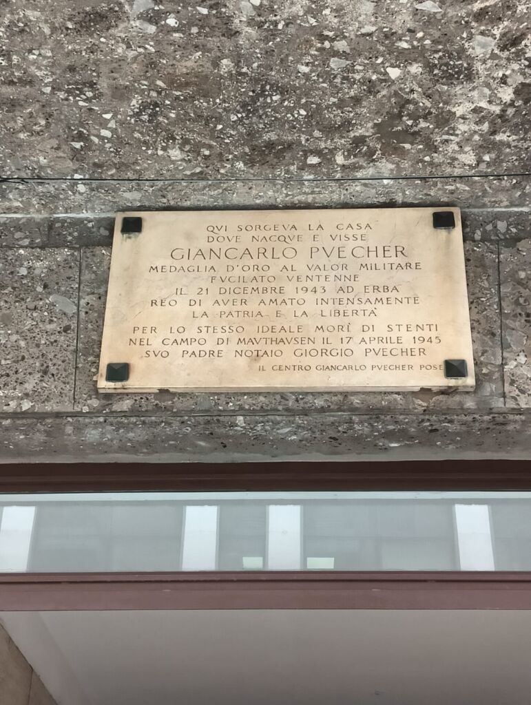 Sullo stesso portone di fronte a cui è posta la pietra d'inciampo, è collocata una lastra dedicata al figlio di Giorgio, Giancarlo, dove nel testo si richiama anche il destino che ebbe il padre: QUI SORGEVA LA CASA / DOVE NACQUE E VISSE / GIANCARLO PUECHER / MEDAGLIA D'ORO AL VALOR MILITARE / FUCILATO VENTENNE / IL 21 DICEMBRE 1943 AD ERBA / REO DI AVER AMATO INTENSAMENTER / LA PATRIA E LA LIBERTA' / PER LO STESSO IDEALE MORI' DI STENTI / NEL CAMPO DI MAUTHAUSEN IL 17 APRILE 1945 / SUO PADRE GIORGIO PUECHER / IL CENTRO GIANCARLO PUECHER POSE.