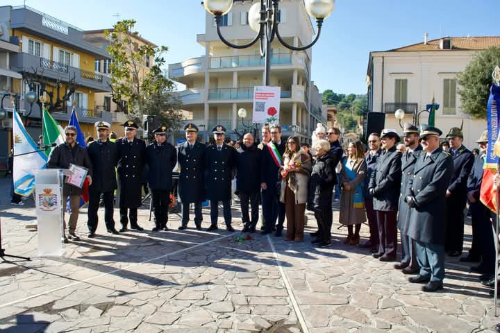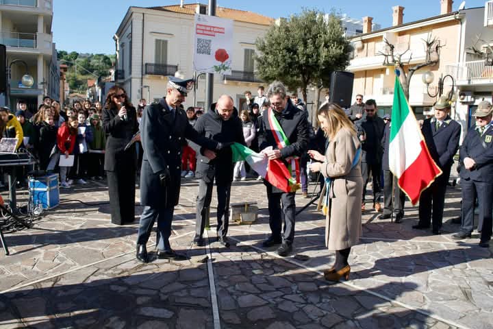 Lo svelamento della pietra d’inciampo si è tenuto in piazza della Libertà, scelta per la sua importanza simbolica e per essere un luogo di incontro per la comunità. Si tratta della prima pietra d’inciampo nel comune rosetano. Alla cerimonia hanno presenziato il Comandante Regionale Abruzzo G.d.F., Generale di Brigata Germano Caramignoli; il Comandante Provinciale G.d.F. di Teramo, Colonnello Fabrizio Chirico; il Sindaco di Roseto, Mario Nugnes; i familiari discendenti del finanziere Giustiniani; studenti e studentesse delle scuole di Roseto; lo storico Walter De Berardinis; il parroco dell’Assunta Don Gabriele Marchegiani.
