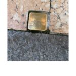 Cubetto di porfido con lastra in ottone incisa sul lato superiore.
