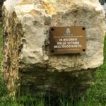 - Si tratta di un blocco di pietra grezzo con con una targa celebrativa in ottone.