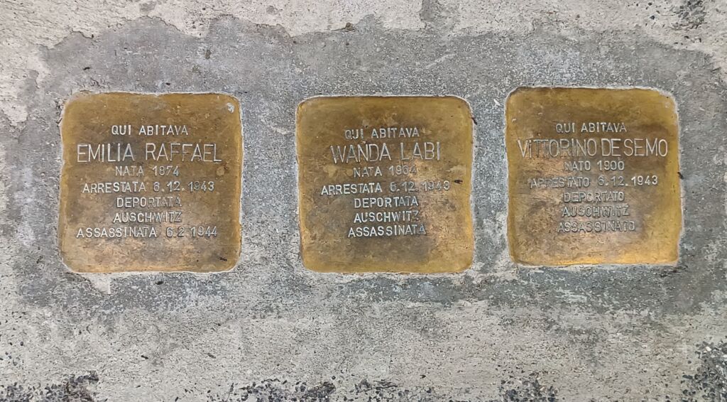 I Coen alloggiarono in una pensione di via Ariosto, mentre Emilia Raffael e la figlia Wanda Labi con il marito Vittorino de Semo. nella pensione Maria Ray di via Mascheroni 8.
