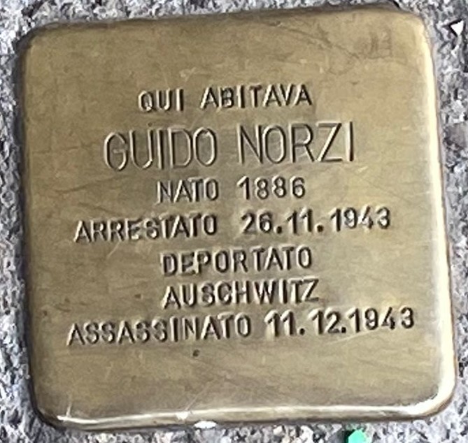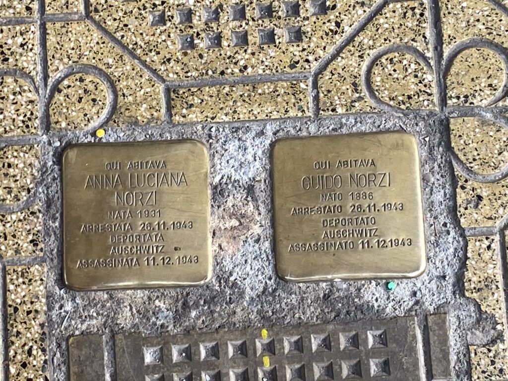 - In Corso Garibaldi, al centro di Sanremo, il 28 gennaio 2022 sono state collocate due pietre d'inciampo dedicate alla memoria di Anna Luciana Norzi e Guido Norzi. Le pietre d'inciampo sono state inventate da Finger Demnig nel 1992, servono a portare nel tessuto sociale la memoria dei cittadini deportati nei campi di sterminio nazisti come Anna Luciana Norzi e Guido Norzi, padre e figlia, deportati in Polonia nel campo di concentramento di Auschwitz: un vasto complesso di campi di concentramento e di sterminio situato nelle vicinanze della cittadina polacca Oswiecim. Durante la seconda guerra mondiale tra il 1940 e 1944, vi furono sterminati più di un milione di prigionieri, in gran parte Ebrei. La famiglia Norzi era composta da tre membri: la madre morta per cause naturali, la figlia Anna Luciana Norzi morta il 11 novembre del 1943 e il padre Guido Norzi morto il 31 gennaio del 1944. Quando arrivarono a prendere Guido Norzi lui nascose la figlia dentro l'armadio di casa sua e chi venne a prenderlo non se ne accorse e portarono via solo lui, la governante vide questa bambina e andò a cercare da vicini o conoscenti della famiglia se potessero prenderla ma non la prese nessuno. Lei la prese e la portò alla polizia dove c'era suo papà. Il motivo della deportazione sono le leggi razziali che sono state introdotte da Mussolini nel 1938 e successivamente controfirmate dal Re che ha permesso che avvenisse questa cosa orrenda. Anche lui ha iniziato ad elaborare la teoria della razza pura con la complicità di tanti studiosi e “scienziati” del tempo, che approvavano il suo operato Gli ebrei non credevano possibile che arrivassero a questo e invece si son trovati di colpo ricercati: ci sono state famiglie che sono state soccorse e nascoste negli scantinati per parecchio tempo, tanti hanno provato a scappare attraverso la via della morte per arrivare in Francia, sopra Ventimiglia, a Grimaldi, sperando di trovare la salvezza, sono state marce strazianti ma non hanno trovato pace nemmeno lì.