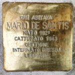 MARIO DE SANTIS nacque a Giulianova l’8 gennaio 1921 da Umberto e Addolorata Ortenzi. Durante la seconda guerra mondiale fu chiamato alle armi il 20 gennaio 1942 nel deposito del 48° reggimento Artiglieria a Nola ed inquadrato nel 14° reggimento artiglieria “Ferrara”. Partì da Bari il 6 luglio 1942 per sbarcare a Cattaro in Montenegro. Fu catturato dai tedeschi a Cettigne in Montenegro l’8 settembre 1943 e internato a Dresda nei lager del IV distretto con numero di matricola 53040. Durante la prigionia lavorò come operaio alle presse per una fabbrica di aerei da guerra. Fu liberato dagli alleati l’8 maggio 1945 e trattenuto fino al 24 luglio 1945. Morì a Giulianova il 4 febbraio 2011.