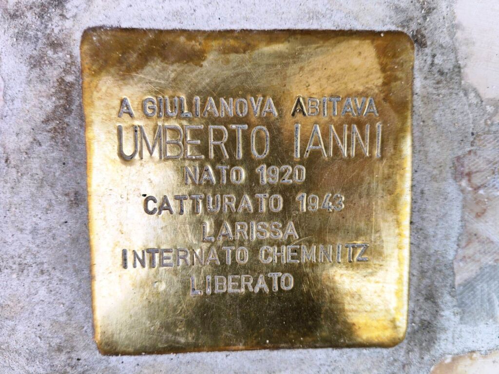 UMBERTO IANNI nacque a Montone di Mosciano Sant’Angelo (TE) il 27 febbraio 1920 da Luigi e Sofia Tomassetti. Durante la seconda guerra mondiale fu chiamato alle armi il 3 febbraio 1940. Il 17 febbraio 1940 partì da Bari per Valona in Albania. Dal 28 ottobre 1940 al 23 aprile 1941 partecipò alle operazioni di guerra svoltesi sul fronte greco-albanese con il 26° battaglione mitraglieri autocarrato mobilitato. Dal 18 novembre 1942 all’8 settembre 1943 partecipò alle operazioni svoltesi in Grecia. Fu catturato il 9 settembre 1943 a Larissa in Grecia dalle truppe tedesche e internato prima nello Stalag VIII-A a Görlitz in Germania (oggi Zgorzelec, in Polonia), poi a Chemnitz (Sassonia - Germania). Rimase prigioniero dei tedeschi fino all’8 maggio 1945 e trattenuto in Germania dagli alleati fino al 26 giugno 1945. Morì a Giulianova il 16 marzo 2001.