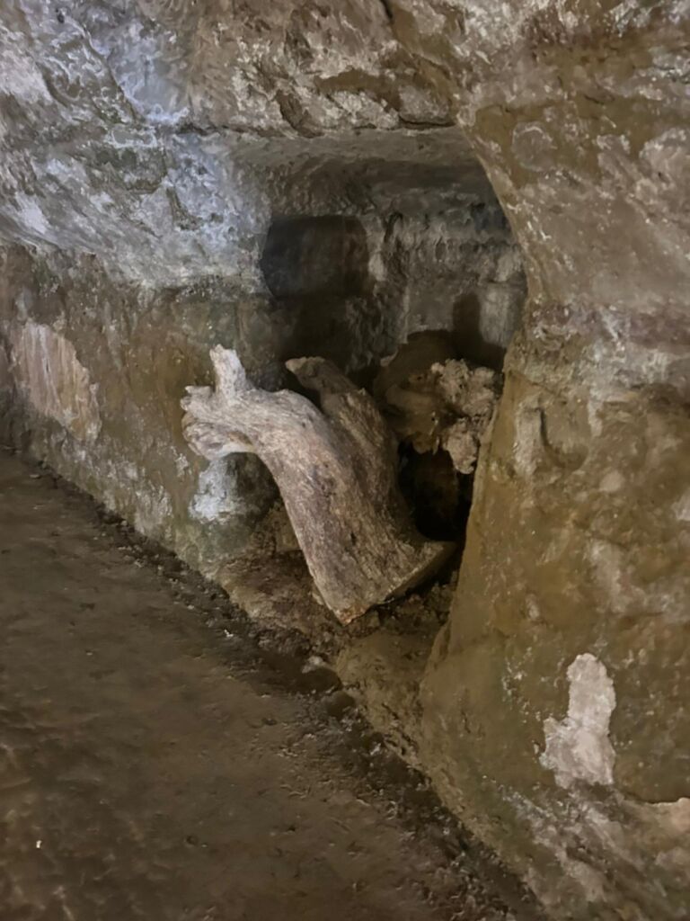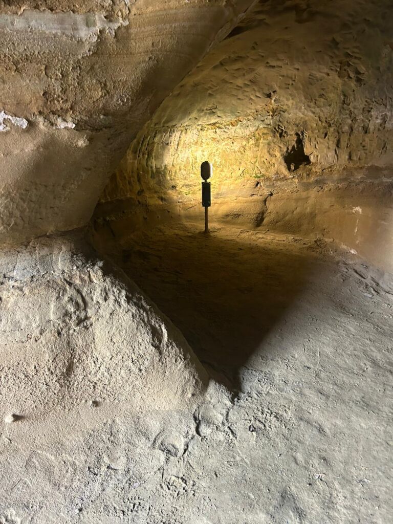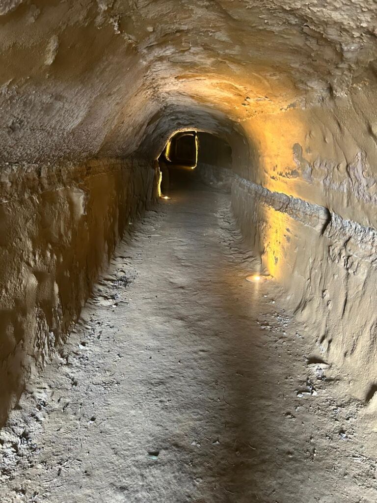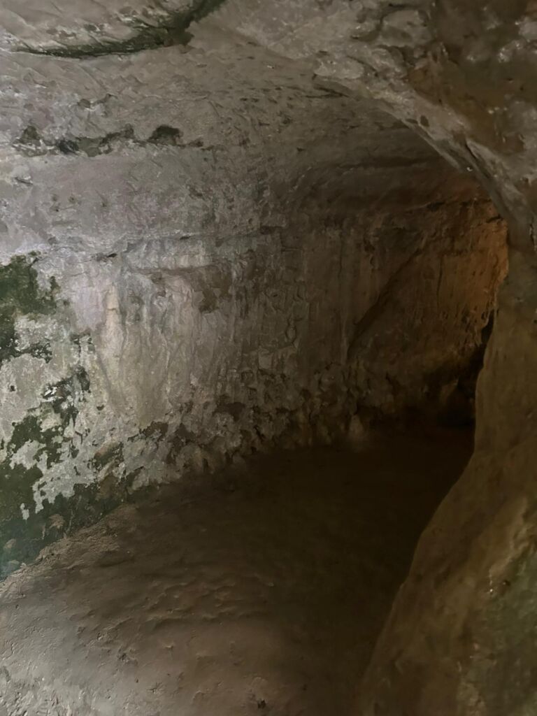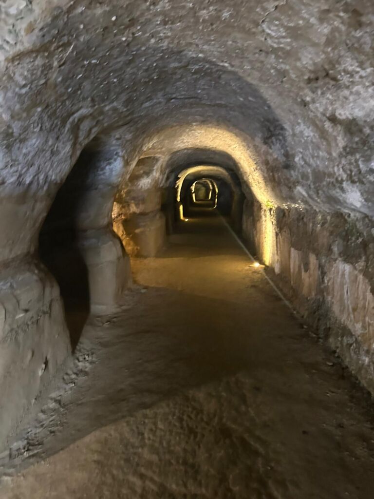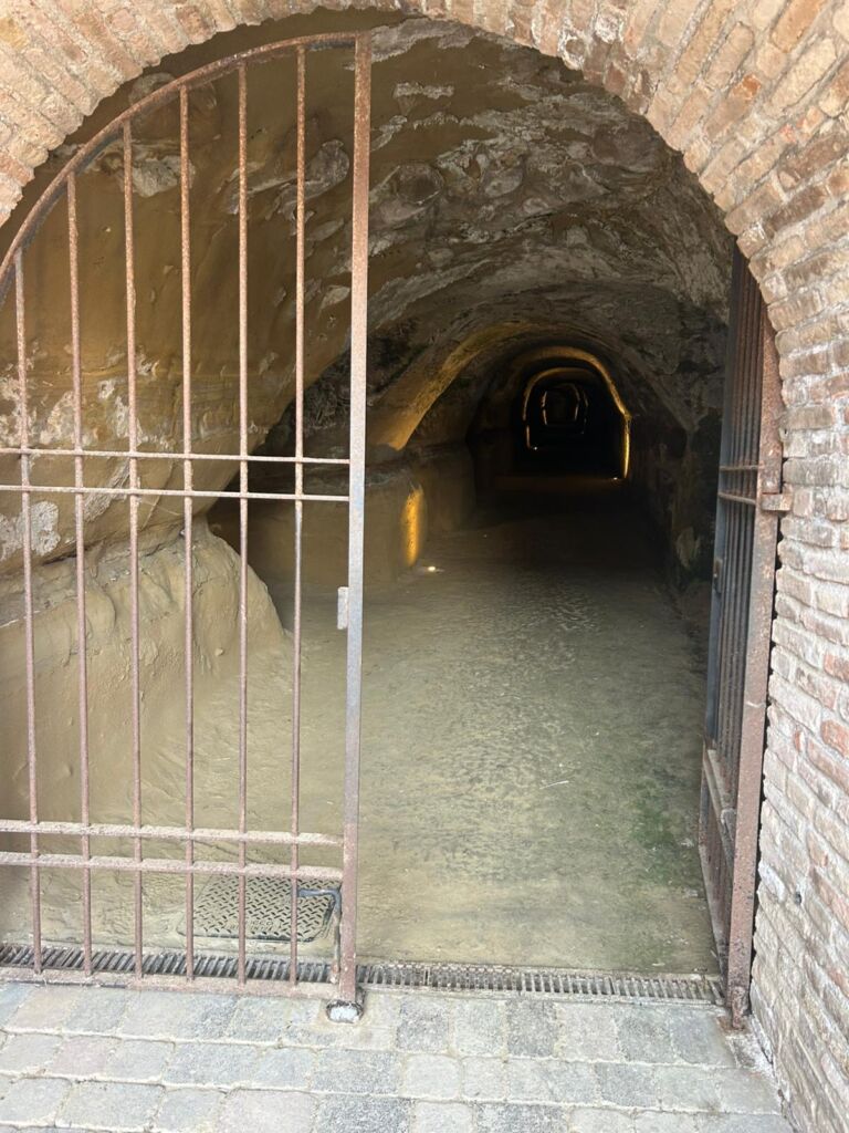 - La lunga galleria sotterranea fu scavata nel tufo.