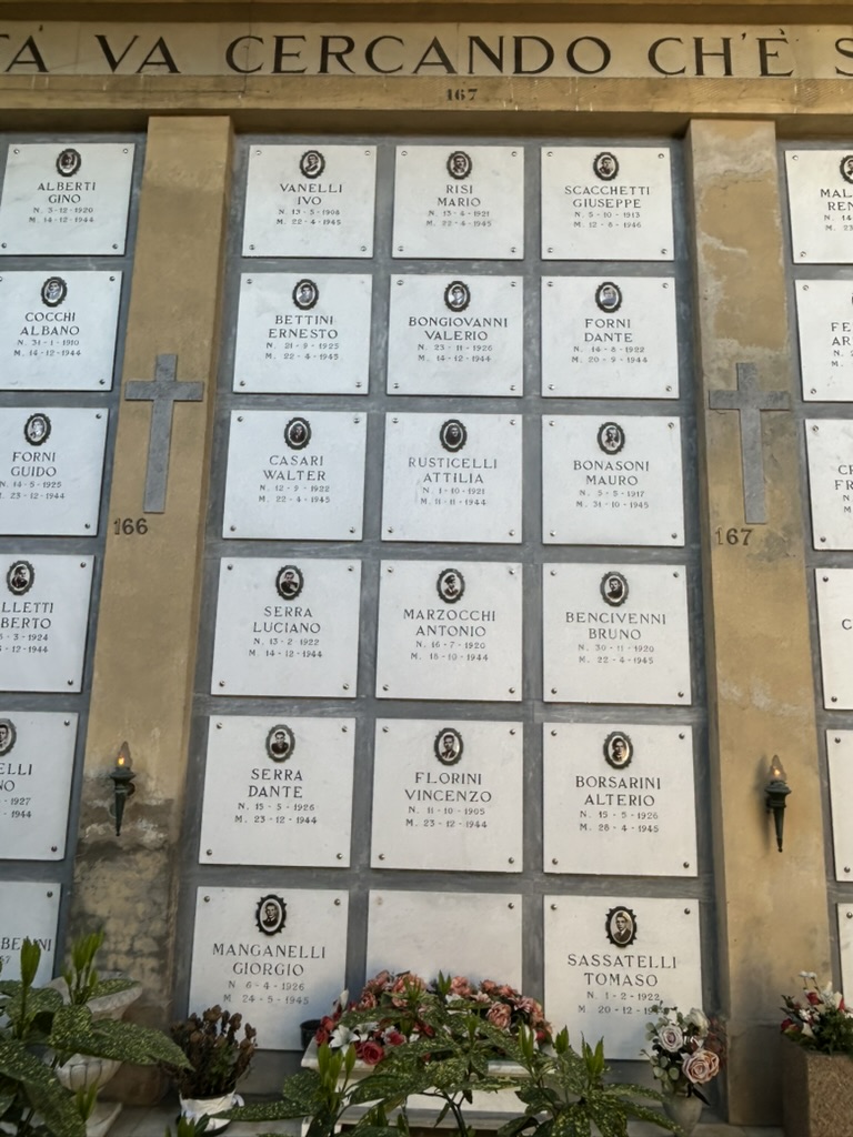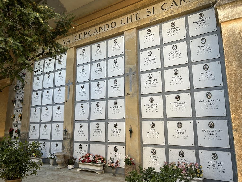 In un cimitero, il sacrario è uno spazio particolarmente significativo, sia dal punto di vista simbolico sia storico. Il sacrario è un luogo dedicato alla memoria collettiva, dove vengono custoditi i resti o ricordati i nomi di persone accomunate da uno stesso destino, spesso legato a eventi tragici o storici importanti. Nella maggior parte dei casi, si tratta di caduti in guerra, vittime di eccidi, deportazioni o altre tragedie che hanno colpito un’intera comunità o nazione. A differenza delle tombe individuali, il sacrario rappresenta qualcosa di più ampio: non racconta solo una singola vita, ma diventa simbolo di un’esperienza condivisa. È quindi un luogo che unisce ricordo, rispetto e identità collettiva. Qui il dolore privato si trasforma in memoria pubblica, e le storie personali si fondono in una narrazione comune.
