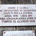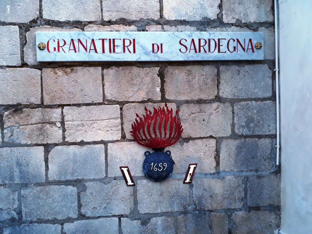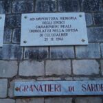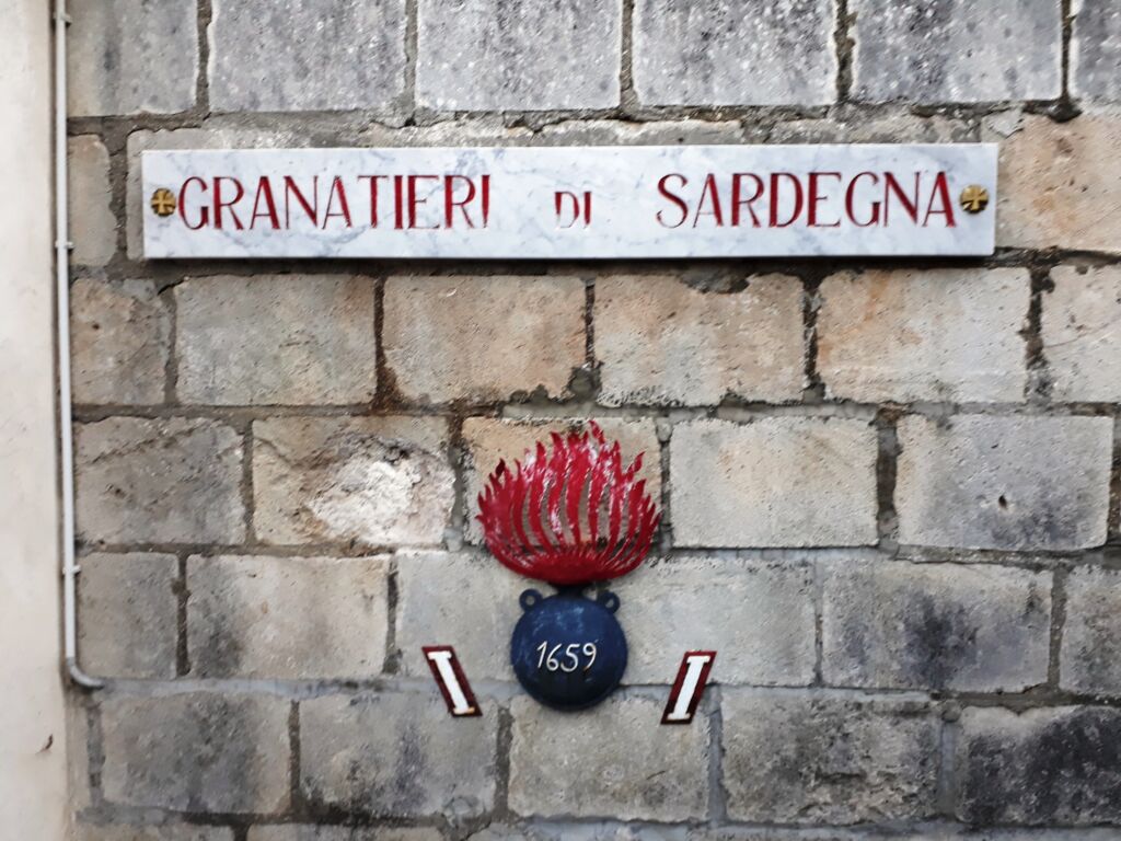 - Sotto le due lastre di intitolazione ai Granatieri di Sardegna ci sono due stemmi dell'Associazione Nazionale Granatieri di Sardegna.