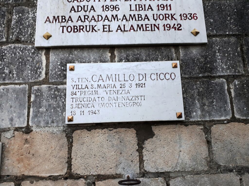 Il sottotenente Camillo Di Cicco nacque a Villa S. Maria (CH) il 25 marzo 1921. Durante la seconda guerra mondiale appartenne al 2° battaglione del 2° reggimento Granatieri di Sardegna. Il 18 novembre 1943 Di Cicco fu barbaramente ucciso dai soldati tedeschi a Sjenica, nel Montenegro.