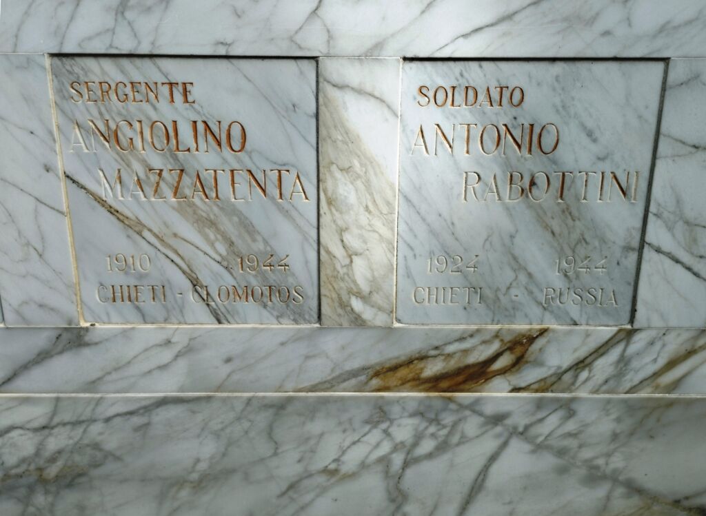 - da due file di 6 lastre di pietra poste a terra su cui sono incisi i nomi di 12 Granatieri abruzzesi caduti nelle due guerre mondiali e decorati al valor militare.