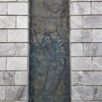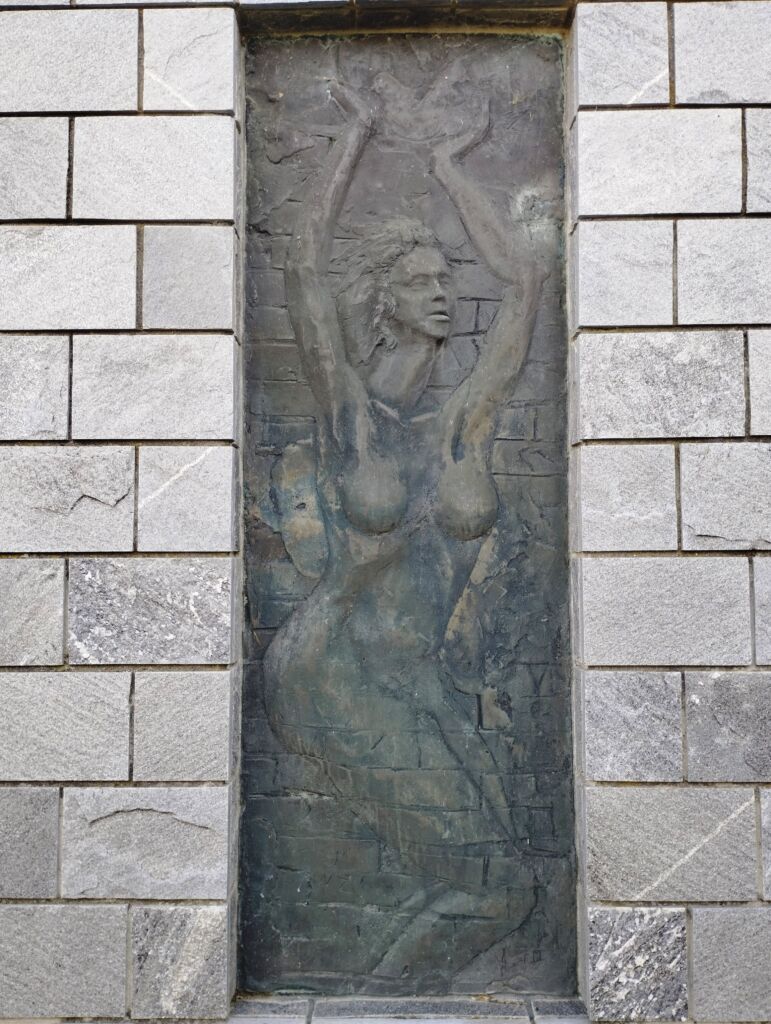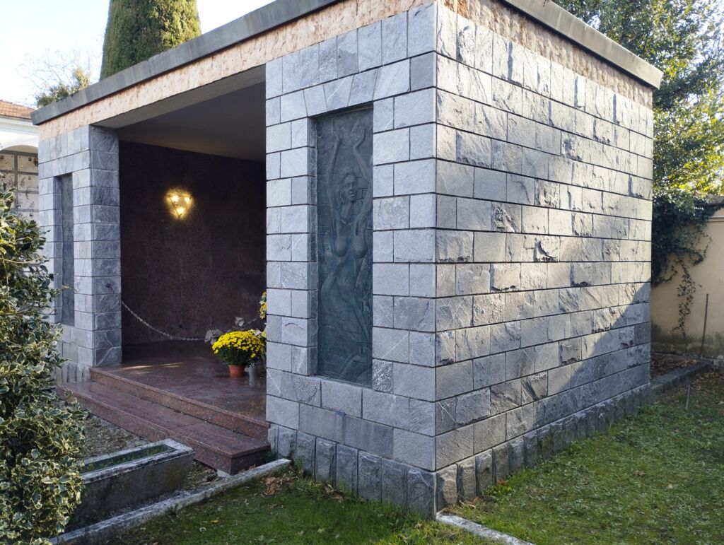 - Il Sacrario è a forma di grande cappella con un'ampia apertura frontale. All'esterno è rivestito di mattonelle di pietra e con una scossalina in rame. Sulle due pareti esterne ai lati dell'ingresso sono presenti due bassorilievi in creta raffiguranti figure di donna. Si accede alla cappella salendo due gradini. L'interno ha sia il pavimento che le pareti rivestiti di lastre di granito rosa (scuro e chiaro). Al centro della cappella sono poggiate a terra due lastre con le fotoceramiche di tutti i caduti, circondate da vasi portafiori. La zona centrale della parete di fondo è aperta ed è coperta da una enorme lastra di vetro su cui sono presenti le dediche e i nomi dei caduti realizzati con caratteri di bronzo a rilievo. La stessa tipologia di caratteri è usata per la scritta posta sulla parete posteriore a sinistra della lastra di vetro.