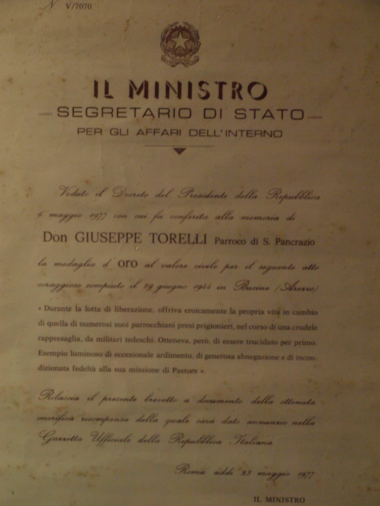 - Il comune di Bucine ed il popolo di San Pancrazio alle vittime della violenza e delle barbarie nazifasciste