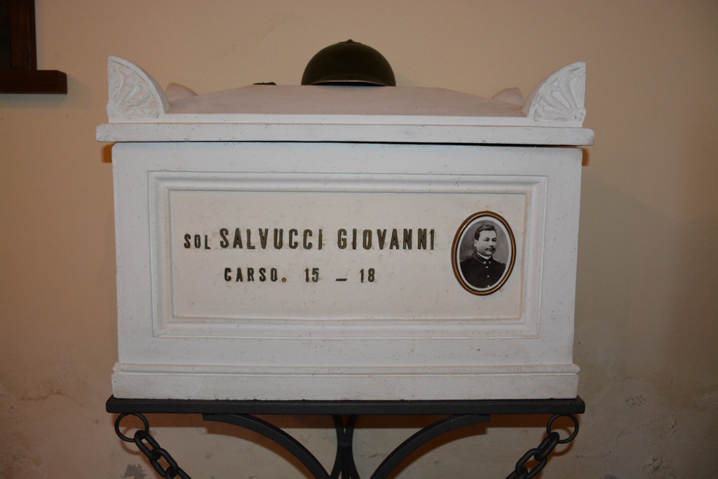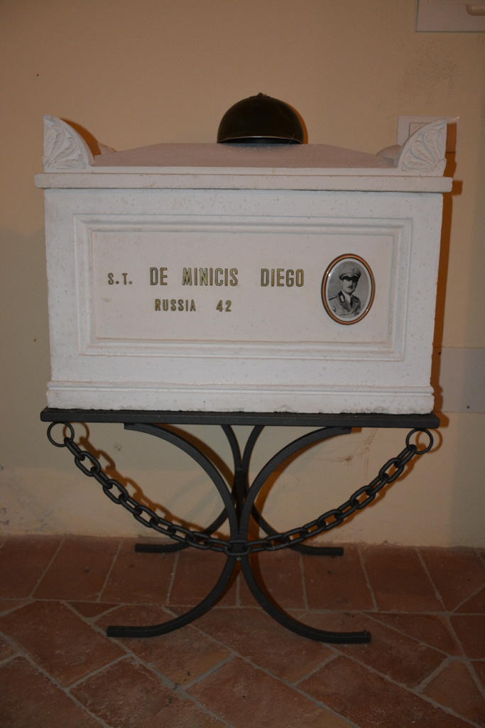 I resti dei Caduti dentro il Sacrario sono quattro, il quinto è stato messo con i propri familiari nel cimitero.