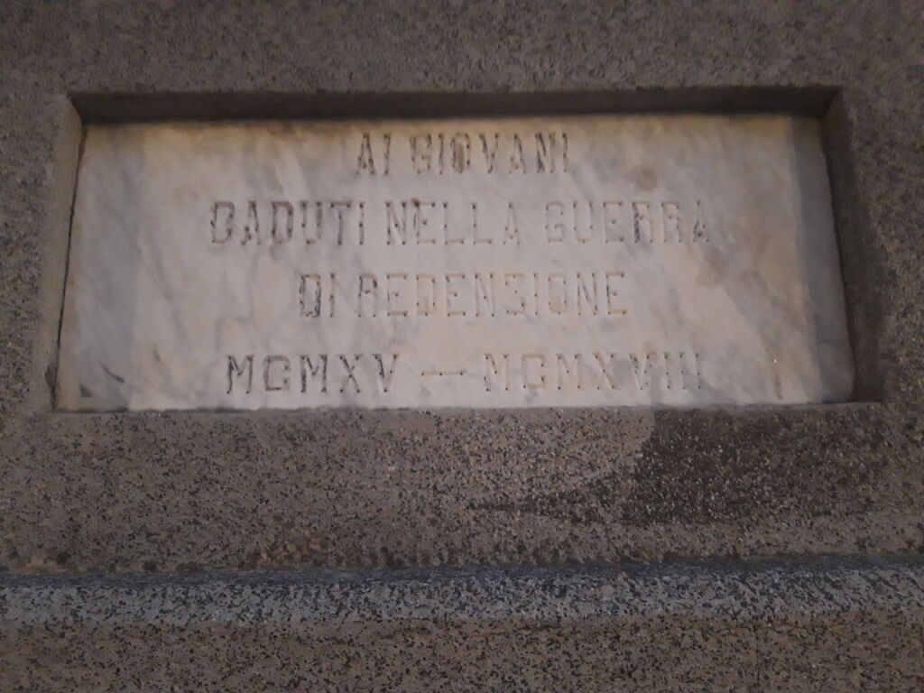 - basamenti = in pietra grigia bocciardata circa mt 1 x 1 x 1,50 e sul fronte due lapidi incassate in marmo bianco;